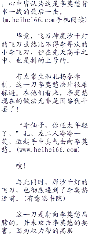 这一刻,一洞神魔和三绝剑魔的眼睛亮了,二人的攻势陡时加强,对着李莫愁施展开狂风暴雨一般的攻击,力求牵扯李莫愁的注意力,不让李莫愁能够分心躲避沙千灯的飞刀。