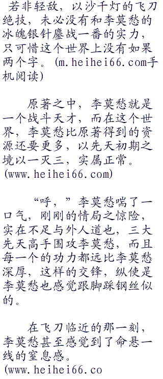 “你在飞刀上抹了毒药?”李莫愁望着沙千灯,脸色变得非常难看。
