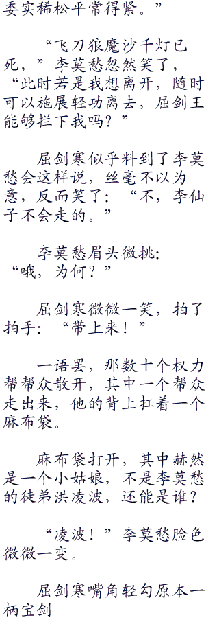 那柄剑,是秦歌,原本是三绝剑魔孔扬秦的佩剑,在孔扬秦死后,被李莫愁所缴获。