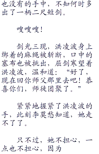 锵得一声将秦歌宝剑归入鞘中,李莫愁冷冷一笑:“行走江湖这么多年,难道连‘不将后背留给敌人’这么简单的道理,你都不懂吗?”