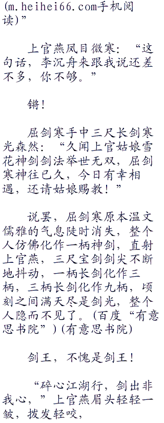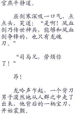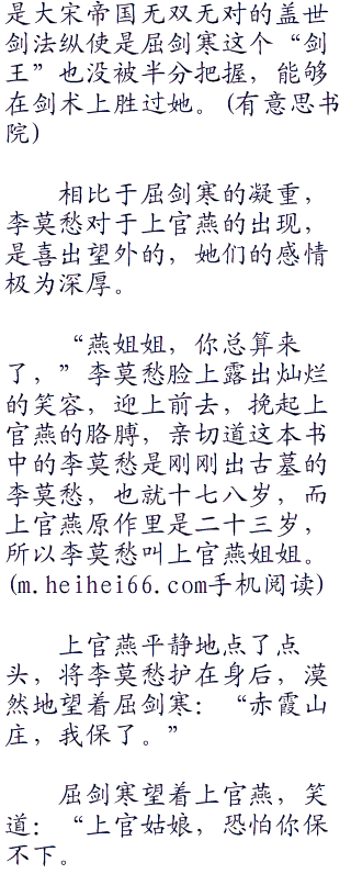 “不必多说了,”李莫愁断然地拒绝了屈剑寒,冷冷一笑,“剑王莫非认为吃定我李莫愁了吗?”