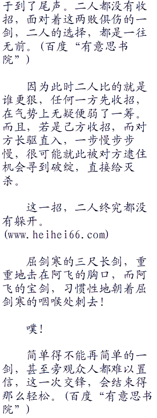 然后,阿飞刺了出去,没错,只是简单得不能再简单的刺,和阿飞以往对阵之时的刺完全相同。