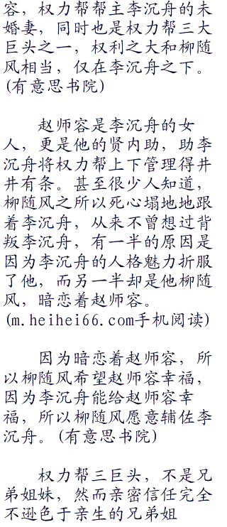 权力帮中,李沉舟不管事,九成九的事务都由柳随风管理,这个“总管”的职能,绝对堪称独一无二,甚至若是柳随风愿意夺权,和李沉舟决裂,权力帮花落谁家,还真未可知。