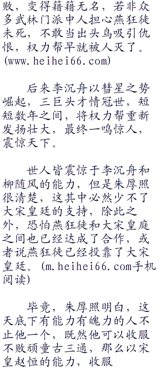 天下人都知道,权力帮的帮主是君临天下李沉舟,权力帮的三大巨头是君临天下李沉舟、袖里日月柳随风和流云水袖赵师容,但
