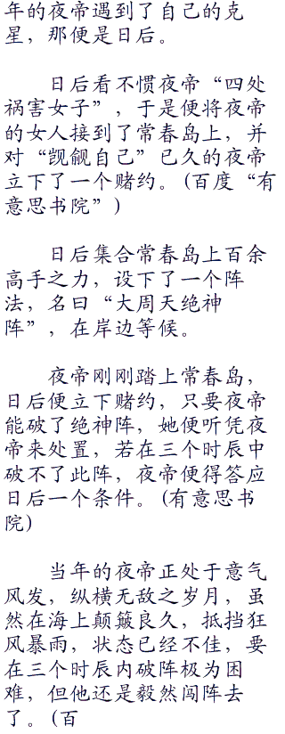 夜帝继位之前,风流之名满江湖,他浪迹江湖四处留情,曾经和很多民间女子一夜风流,诞下龙种,当今大明帝国和明皇朱佑樘同一辈的八子五龙,尽为夜帝之子。