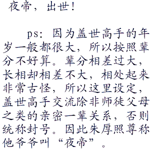 夜帝姓朱,曾经是大明帝国的一任明皇,当今明皇朱佑樘,正是夜帝的大儿子。