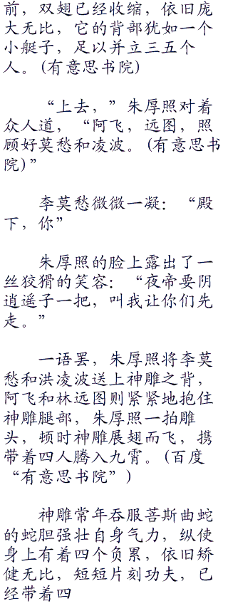 李莫愁洪凌波完全就是看热闹,纵使是赵师容、阿飞和林远图,在面对这种层次的交锋时也只能窥到半点皮毛,无