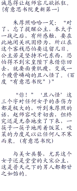 赵师容哼道:“你到底想干嘛?你以为你给的菜,本公主会吃吗?”