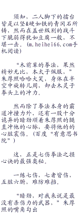 可以说,七伤拳这门拳法在大明江湖的传闻之中,绝对是最为顶尖的拳法之一,严格说起来,整个大明帝国也就皇室的盖世皇拳能够压这七伤拳一筹。