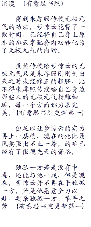 “能够成为天剑,虽然只是半步天剑,但果然也有一颗傲然的剑心,”独孤剑明白,朱厚照本不必要将血菩提赠与自己,当他还是这样做了,因为他不屑于占别人便宜。