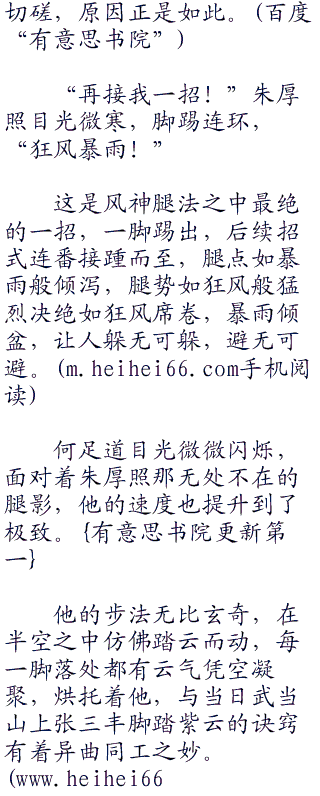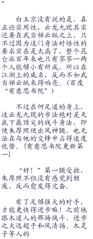 面对着何足道,朱厚照并未施展出风卷楼残,因为他很清楚何足道扬名天下的“昆仑剑法飞龙大九式”和“迅雷剑法”,都是以快和凌厉著称的神剑,并不像木灵子的七伤拳一样注重攻击,速度不足。