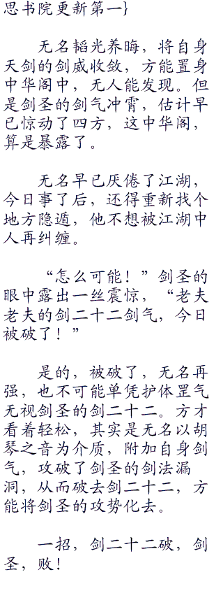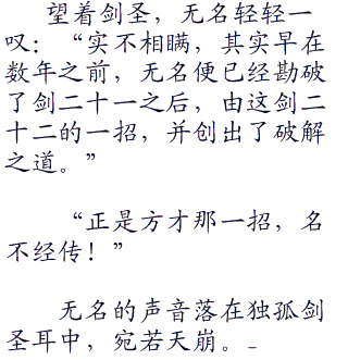 “不错的家伙,”独孤剑圣点了点头,“无名,这是个好胚子,难道你想让他死在老夫剑下吗?”