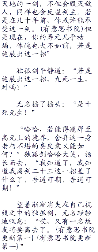 然而面对着独孤剑的提问,无名黯然地摇了摇头,道:“不,我并没有将这一剑领悟到极致。”