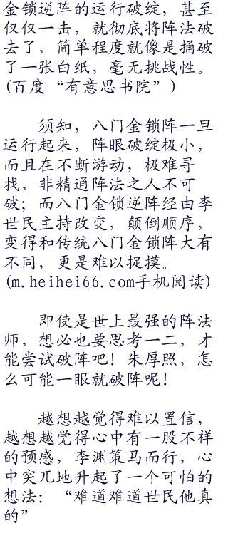 按理来说,那二百黑甲精骑乃是黑甲精骑之中的精锐,在整个李阀中也属于王牌力量之一了,他们布置出来的八门金锁逆阵,最擅长防御和困敌,不说能够围困绞杀盖世高手,至少能够阻拦盖世高手的脚力,使其被阻挡盏茶功夫。