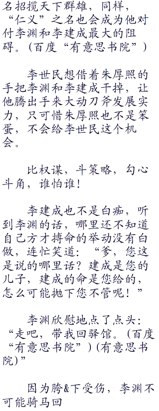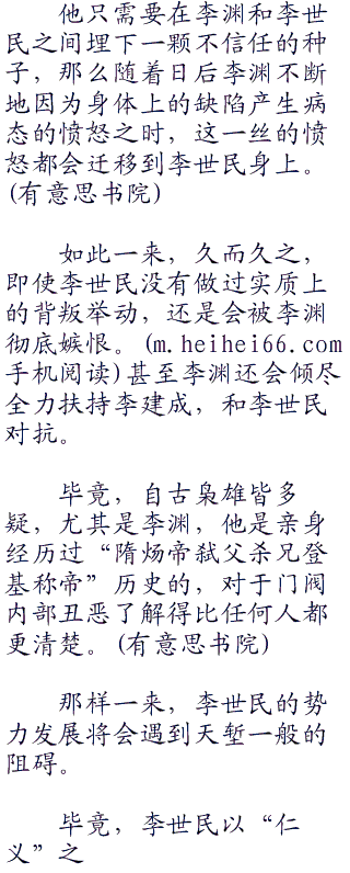 若李世民对李渊的确没有其他的心思,朱厚照想要凭空离间二人的关系也没那么轻松。偏偏李世民的确是个有野心的人,而他的野心已经大到了可以将亲情置于一旁的程度。