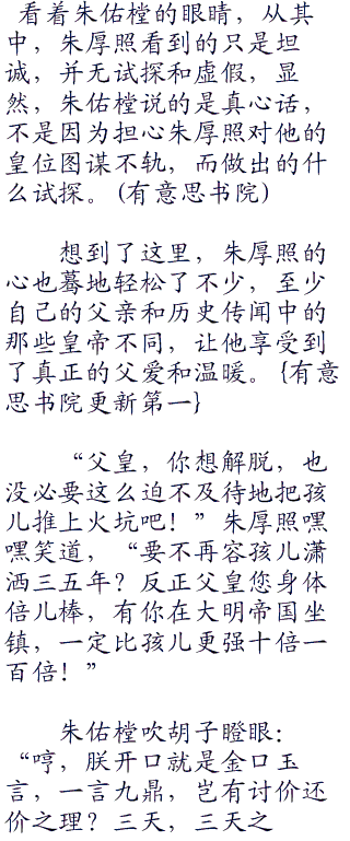 朱厚照尴尬地挠了挠自己的脑袋,嘿嘿一笑:“父皇明鉴。”