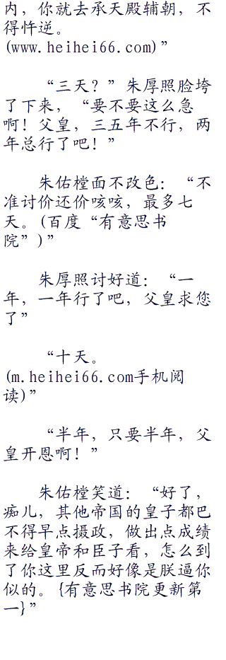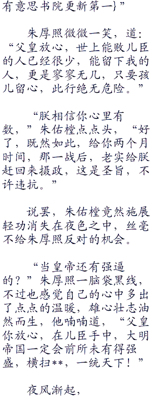 “对了,朝堂之上的事务已经安排妥当,”朱佑樘望着朱厚照,忽然笑道,“照儿,你打算何时开始正式摄政?”