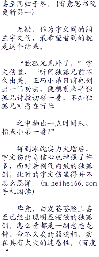 独孤剑目光淡漠,望着来人,平静道:“宇文伤,你所来何事?今日老夫要去赴雄0的战约,没时间陪你虚与委蛇。”