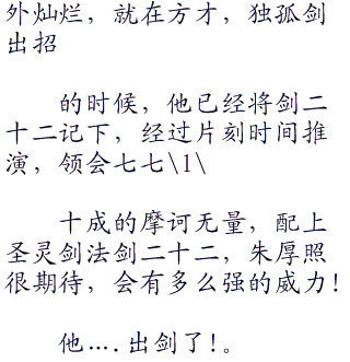 结给不屑地嗤笑一声:“宇文伤不自量力,前去拦截独孤剑,能不能活着回来还是两码事呢!宇文成都竟敢辱骂恩师,今天,他就留下来吧!”