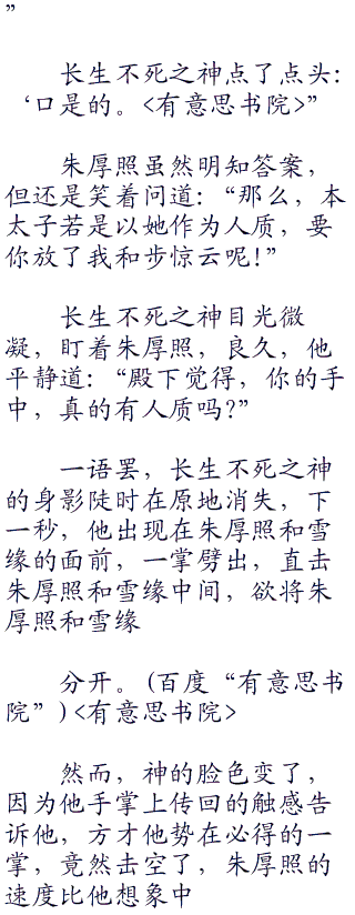 呵呵,神的语气十分诚恳,若非朱厚照乃异界来客,熟知《风云》系列小说的真相,说不定还真会被长生不死之神给骗了。有「意「思「书「院