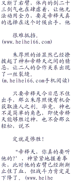 现在无双剑毁,他是三人之中最弱小也是最没有杀伤力的存在,至少神和帝释天都不会再忌惮一个失去了剑二十三的明皇太子。