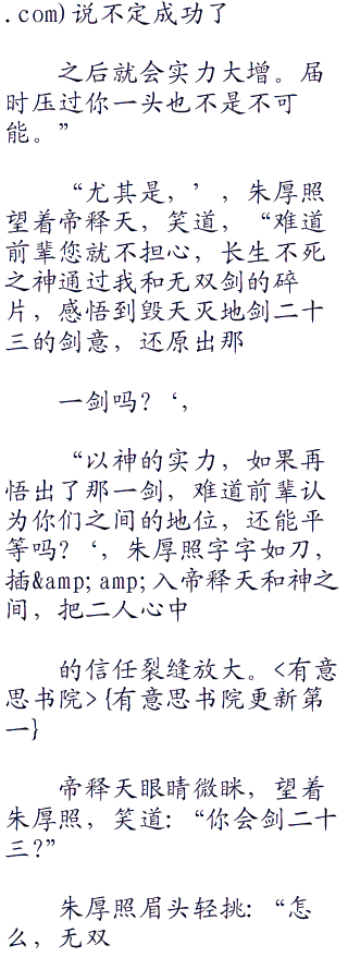 “前辈,”朱厚照缓缓地走到了帝释天的身边,微微一笑,道,“本太子觉得,合作,是二者实力相近才能维系的关系。如今那位自称为‘神,的前辈
