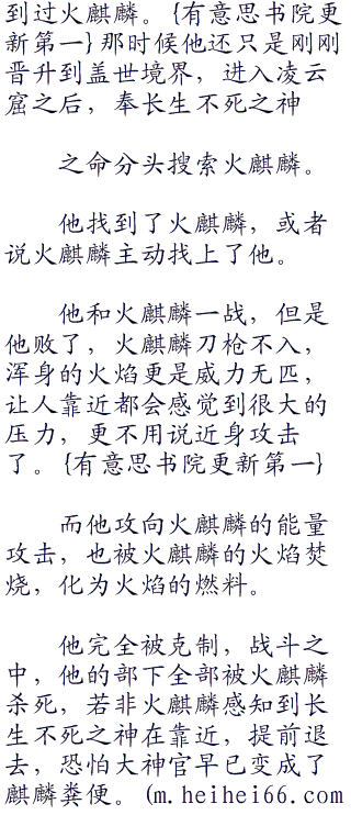但是,火麒麟乃是天地奇兽,冥冥之中自有天命庇佑,火麒麟对于高手的气息有着超越人族的感知力,一旦感知到了不可抵抗的敌人,根本就不