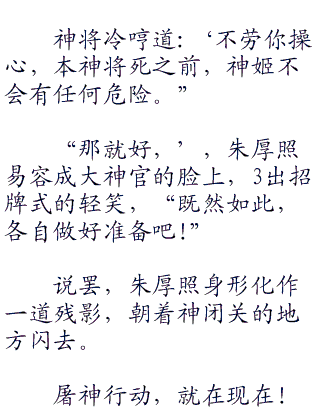 熟知剧情,即使面对着“’&a;quot;神”这种实力超过自己的对手,朱厚照依旧可以运筹帷幌,克敌制胜,到现在,朱厚照灭了神的把握,已经有了九成