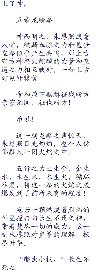 盖世皇拳配合着麒麟战体使出,威力强大到前所未有的程度,此时朱厚照仿佛化身成一尊上古的战帝。每一拳击出,都是皇者在审判着罪人,不
