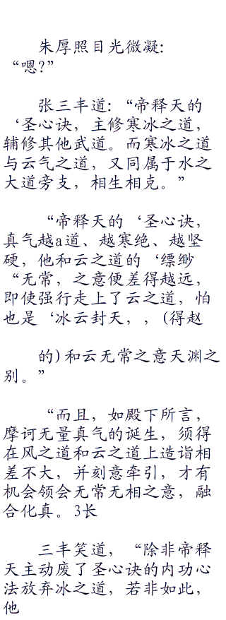 若非如此,铁胆神侯朱无视吸干天池一百零八个高手全身的真气,早就已经超越张三丰一百年的功力了,也不会一直驻留在玉皇天的境界无法突