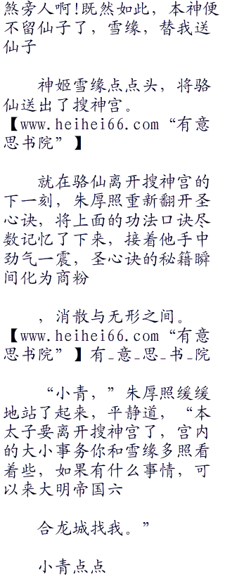 “神,您在想什么?‘,骆仙的声音将朱厚照从失神之中唤醒。ww w hei co br />