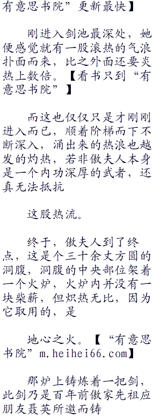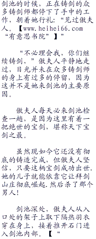 拜剑山庄主人“傲”家乃铸剑世家,这这剑池正是庄内师傅们平日里铸剑之所,不论外界是酷暑还是寒冬,剑池内从来都只是一个环境,那便是炽