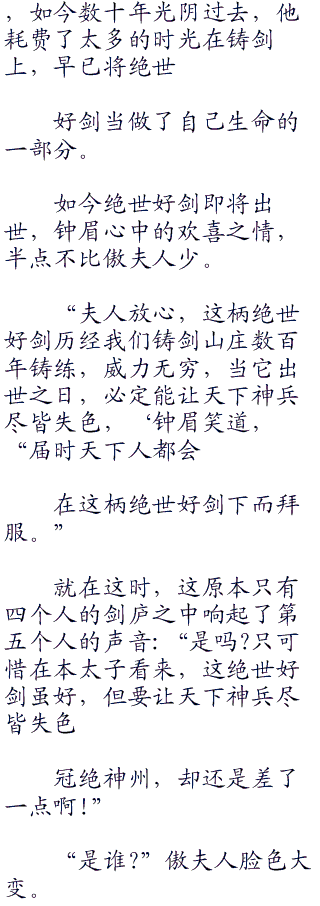 江湖上的宝剑利器,许多都出自于这剑池之中,同样的,江湖上绝大多数的人也会因能在拜剑山庄求得一剑而自豪得意。