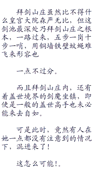 在傲剑山庄的左边一大片区域还有一处特殊所在:剑池,而这剑池,也正是拜剑山庄在江湖上立足的根本倚仗。
