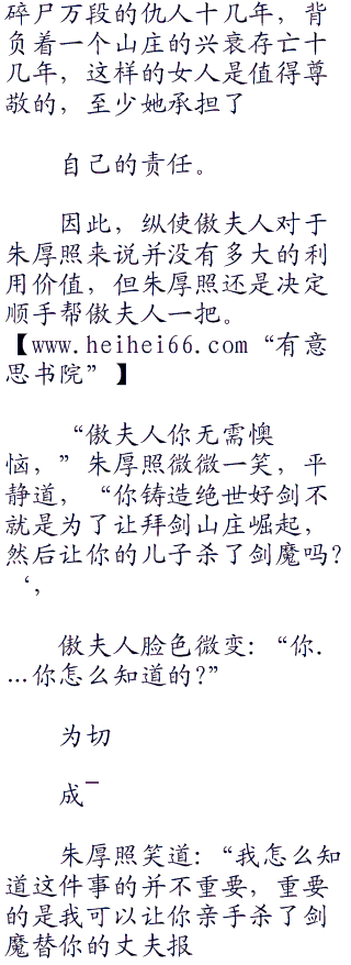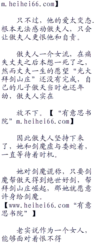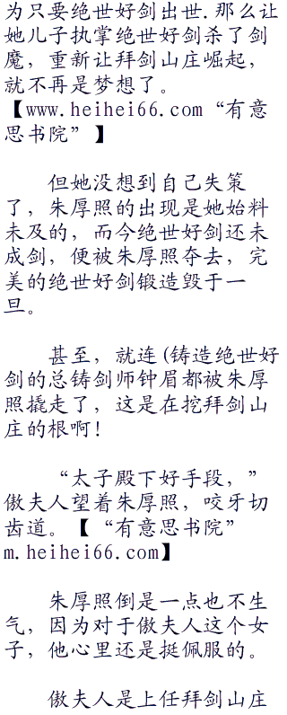 事实上,钟眉一家和拜剑山庄的傲家并不是从属关系,亦非效忠傲家。w w w heihei 66 co br />