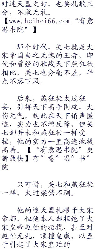 关七,本命关木旦,其一手创办的,’迷天盟”曾经一度称翁大宋帝国的帝都开封,风头无二。