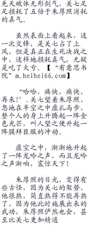 在这个世界上,会使先天破体无形剑气的人虽然不多,却也不止关七一人。有意思书.院首发但是很少有人能和关七一样将先天破体无形剑气练到那个层次。