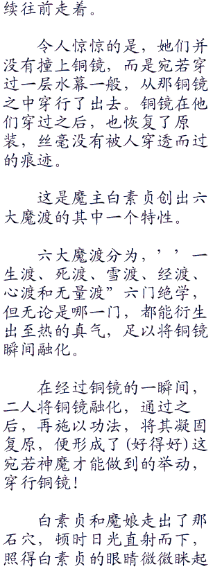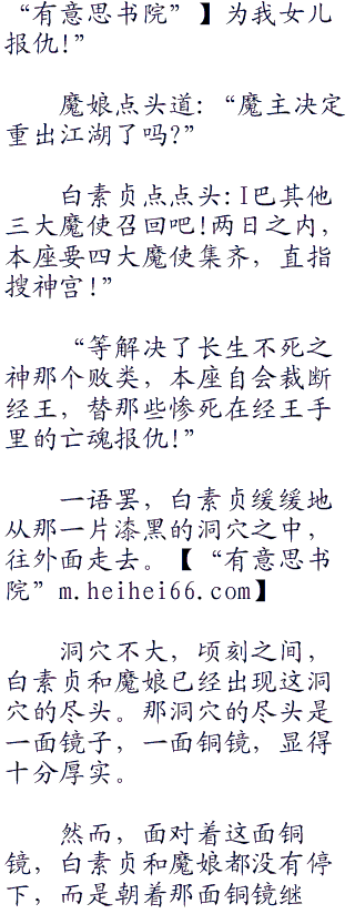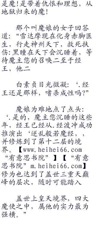 当今天下,除了她的绝对心腹魔娘之外,再无第三个人知道她其实是一个女子。纵使是她魔下的另外三大魔使黑瞳、雪达摩和经王,对此也一无所知。