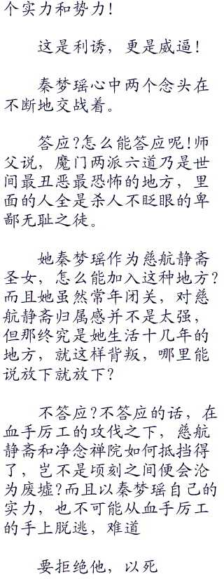 祭梦瑶手中的宝剑落在地上,发出清脆的声响,而给缩的纤纤玉指已然直指她的咽喉,一股无形却又无比强大的立场宛若一张蛛网,将祭梦瑶牢牢地束缚着。有,意思书院