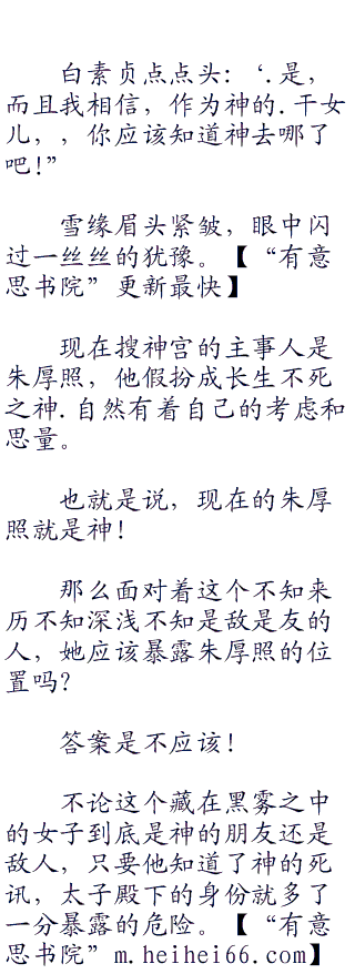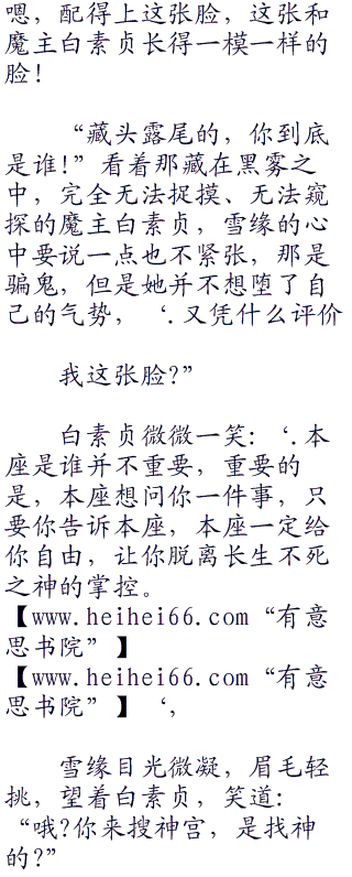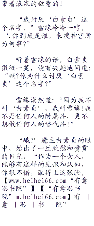 “你,就是新的白素贞?’魔主白素贞望着雪缘,眼中露出一丝复杂的情绪。有、意.思.书.院