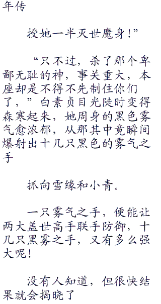 这是魔主白素贞最早的名字,这个名字记载着她和神的相识,她和神的相爱,她和神的决裂,她被神无情地残害二