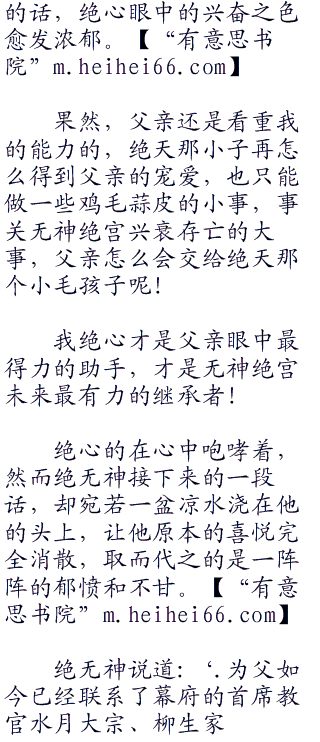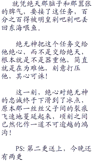 似乎一旦触怒绝无神,即使他绝心是绝无神的亲生儿子,也要身首异处.死无葬身之地。