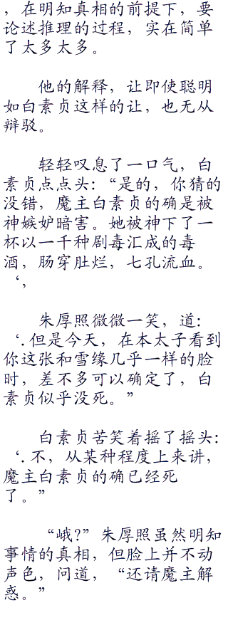 严格意义上来说,此时的魔主白素贞并非最早的白素贞,她是真正的魔主以特殊秘法将“记忆,‘功力,见识‘感悟”等武道印记尽数嫁接入体,产生的人形化身。
