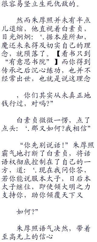 ,’但是在本太子看来,你们的理想,从本质上来说就有着无法规避的残缺,’.朱厚照的语言毫不留情,斩钉截铁道,‘这本来就是一个自相矛盾的理念!”
