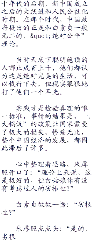 不待白素贞回答,朱厚照接着道:“是不是想建立一个绝对公平,绝对民主,绝对没有杀戮,绝对没有争斗,所有人都能随心所欲、幸福快乐的梦幻国度?”