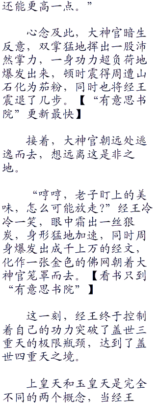 紫衣经王的无经无道早已修炼到了第十三层的境界,将六大魔渡之中的“经渡llfl7生到至高无上的境界。纵使为了避免引起众,’五六七,’人的怀疑,他特意藏拙,依旧不是大神官这个玉皇天