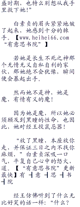 经王冷冷一笑,晃了晃被自己掐在手中的黑瞳,玩味地望着白素贞:‘.我说高高在上的魔主大人,您觉得在您的眼里,到底是我经王的这条小命更重要呢!还是黑瞳这小贱人的命更重要