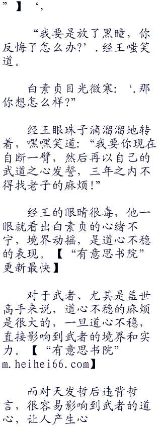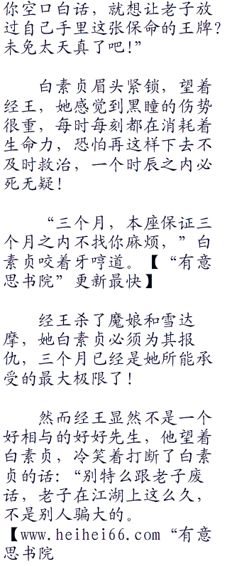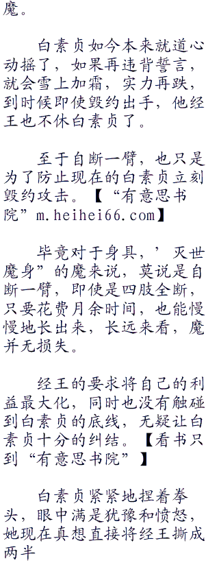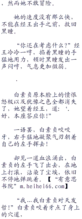 “自裁?’.经王的声音中,嘲讽之意不带着半点掩饰,他望着白素贞,嘿嘿一笑,“你觉得你有这个能耐让老子自裁?”