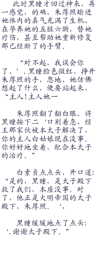 朱厚照摇了摇头,望着白素贞,道:“你自己也受了这么重的伤,还将真气输送给黑瞳,太勉强自己了。”