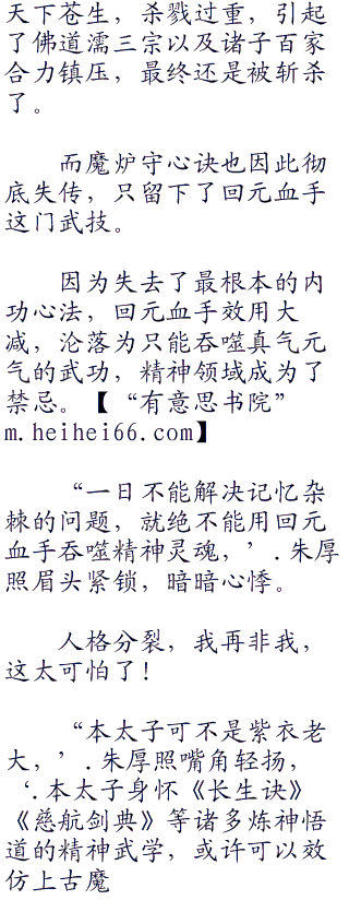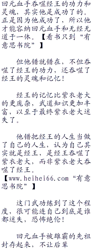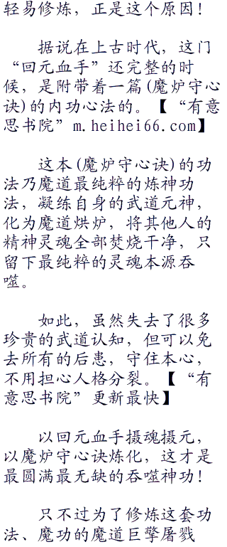 回元血手本身的确可以毫无限制地吞噬他人的精神力量和武道知识,从而轻松地提升自己的武道底蕴和悟性意志。